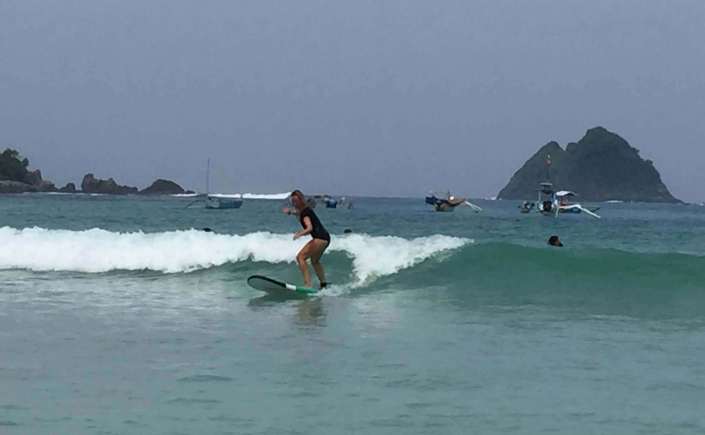 Beginners Surfing and Swimming at a perfect white sandy beach in the South of Lombok